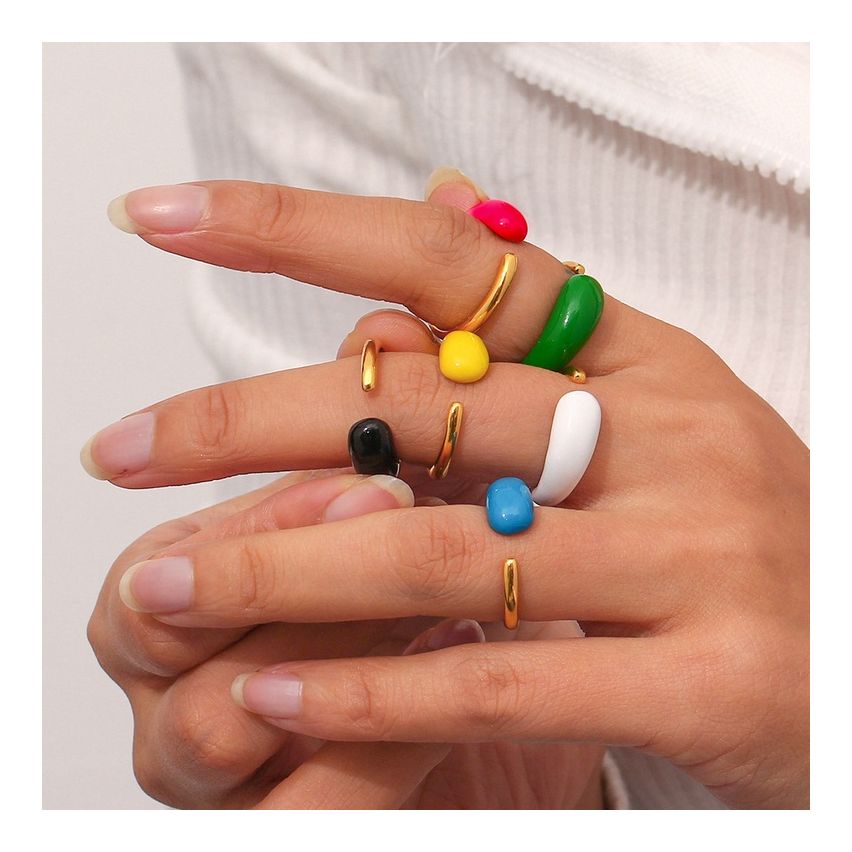 Gold S.Steel and Enamel Smooth Ring