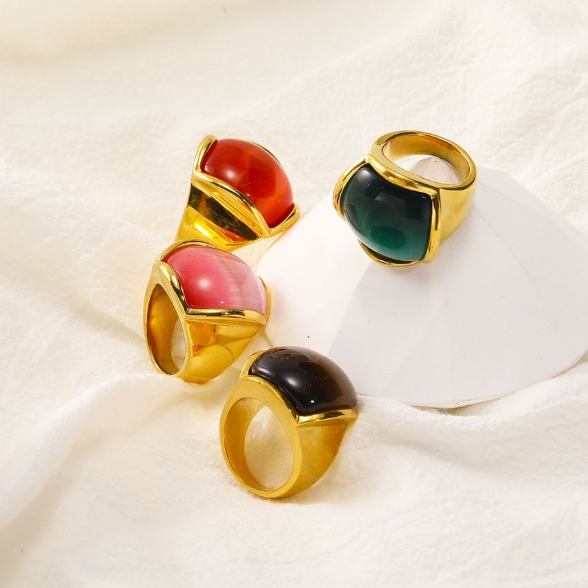 S.Steel Gold Plating Red Glass stone Smooth Women-c