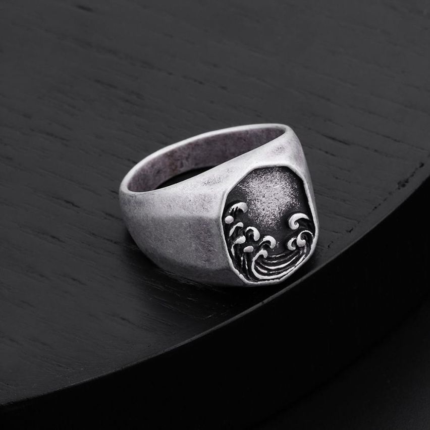 Antique silver S.Steel With Plate Ring